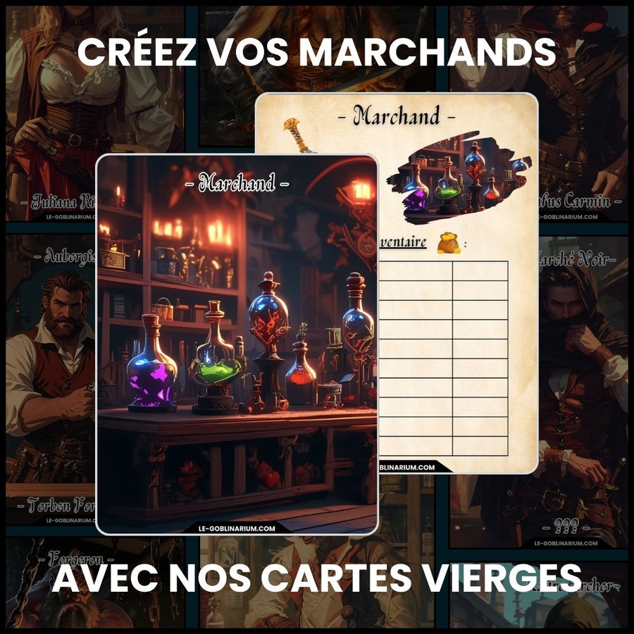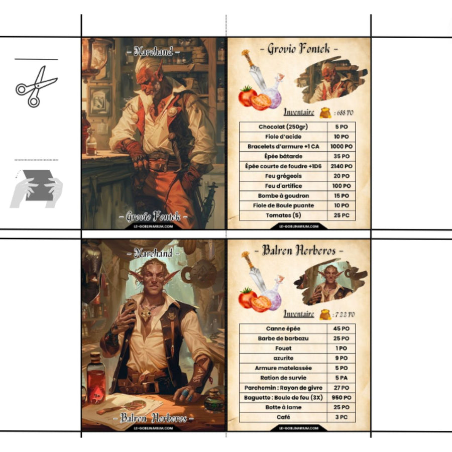 Enrichissez vos parties de Dungeons & Dragons et Pathfinder avec une variété de PNJ marchands détaillés.